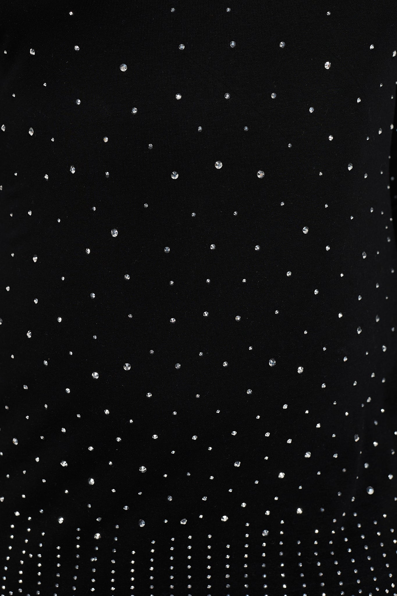 This sexy dress is must-have for any fashionista. With rhinestone embellishments that sparkle and a figure-hugging bodycon fit, it's perfect for a night out on the town. The long sleeves and round neck add a touch of elegance to this imported dress made of 95% cotton and 5% elasthane.