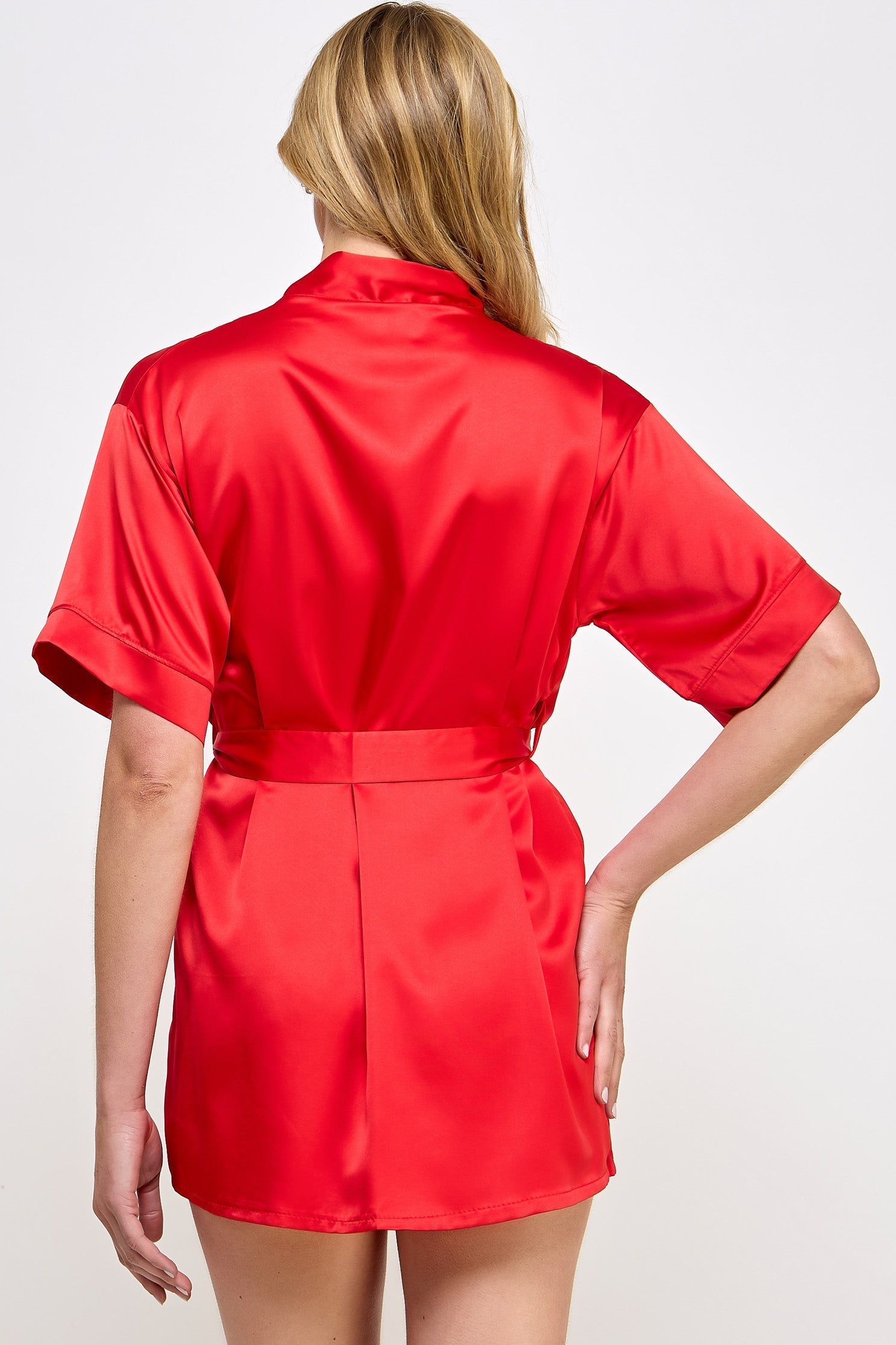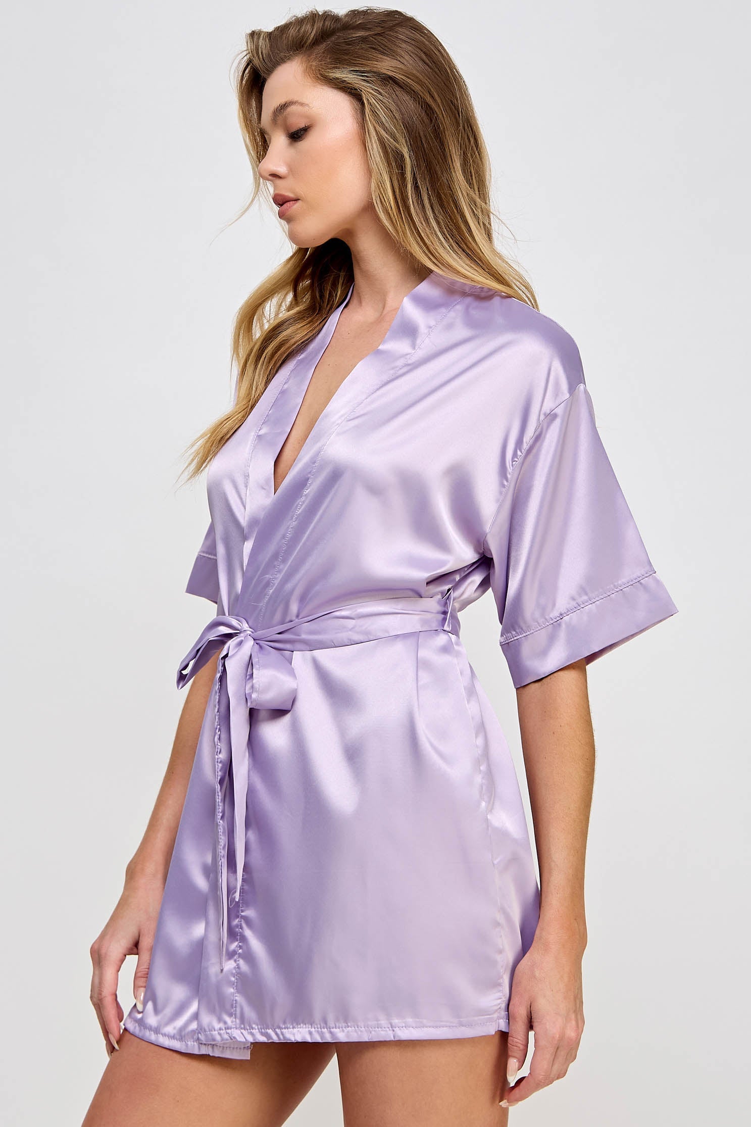 The Satin Lightweight Robe is the epitome of elegance and comfort, designed for those who appreciate the finer things in life. Crafted from premium satin, this robe boasts a sleek and smooth texture that feels luxurious against the skin. Its lightweight design ensures breathability and ease of movement, making it perfect for lounging in style or preparing for a day or evening out. Short length Open front Matching front tie satin belt