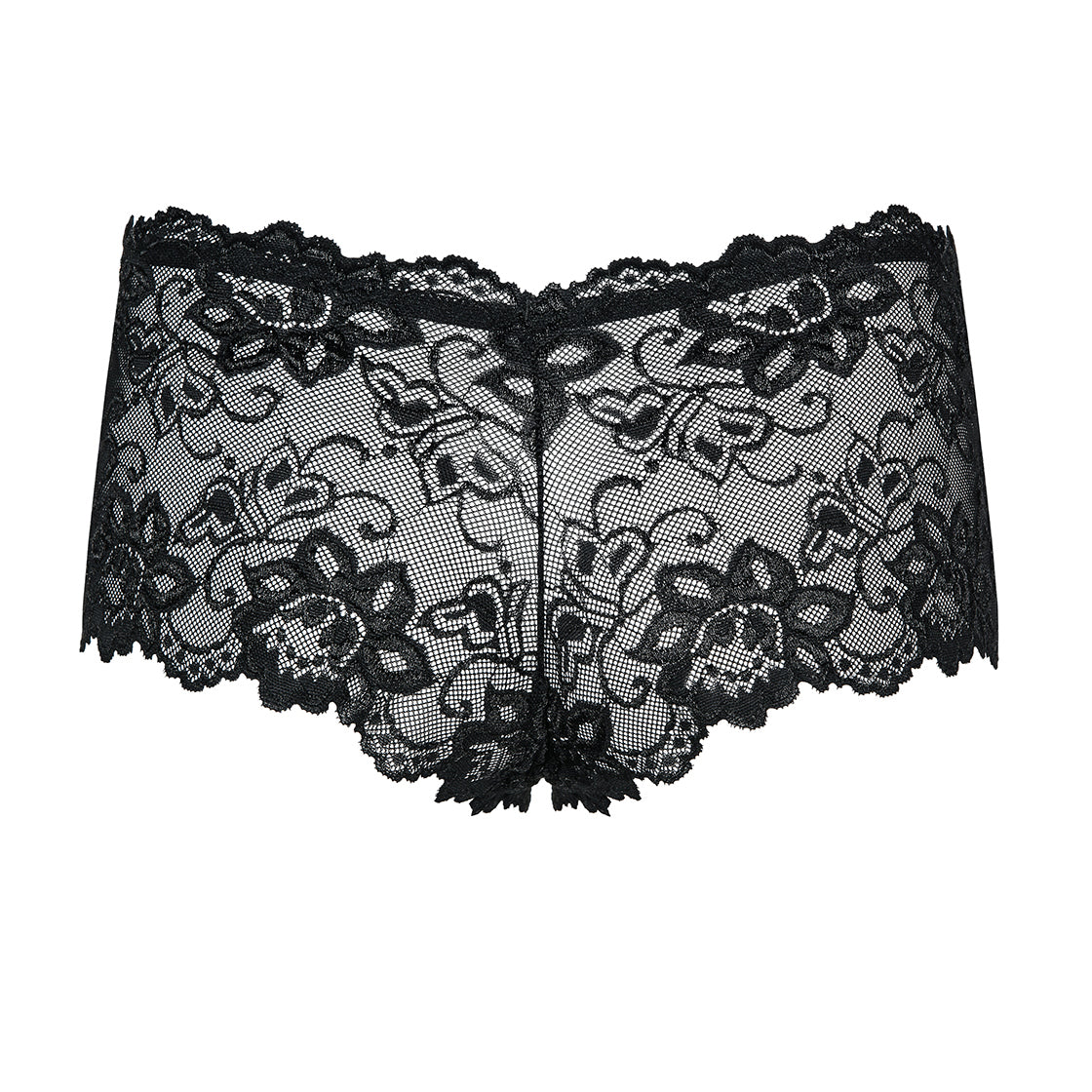 Made from a luxurious blend of 90% polyamide and 10% elastane, they provide a soft, stretchy fit that gracefully hugs your curves. The delicate floral lace details exude sophistication, while the slightly transparent material adds an air of intrigue.