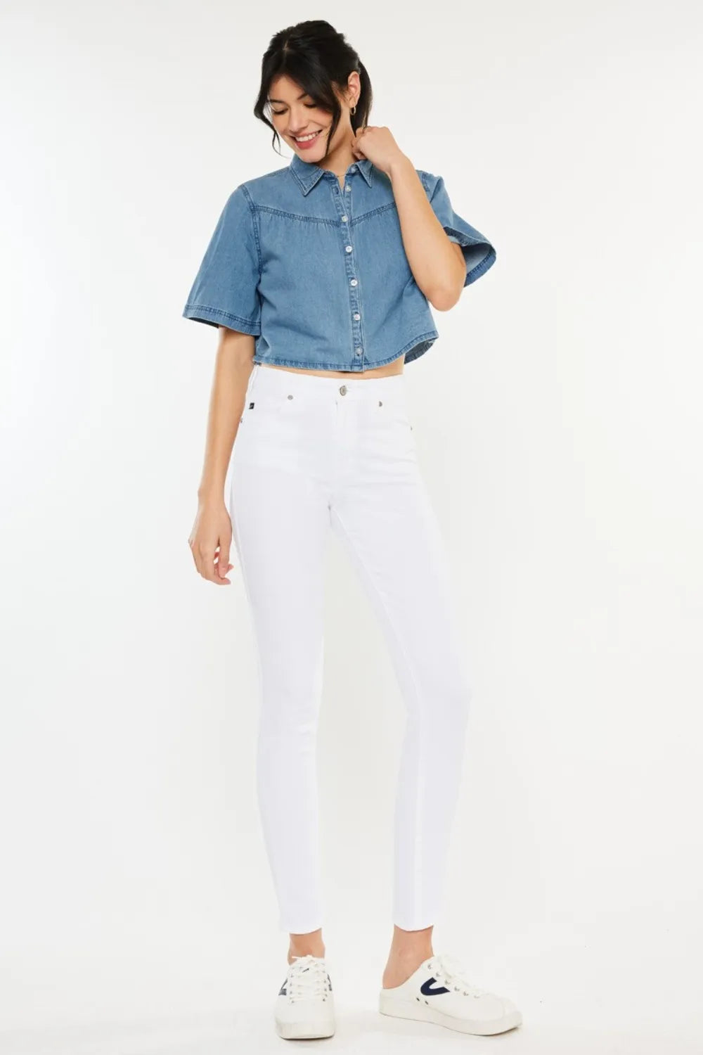 Introducing Kendra's Perfect Fit Ankle Skinny Jeans, your new go-to for elevating everyday style. Crafted by Kancan, these high-rise jeans are designed to enhance your figure and elongate your legs for a sleek and flattering silhouette.