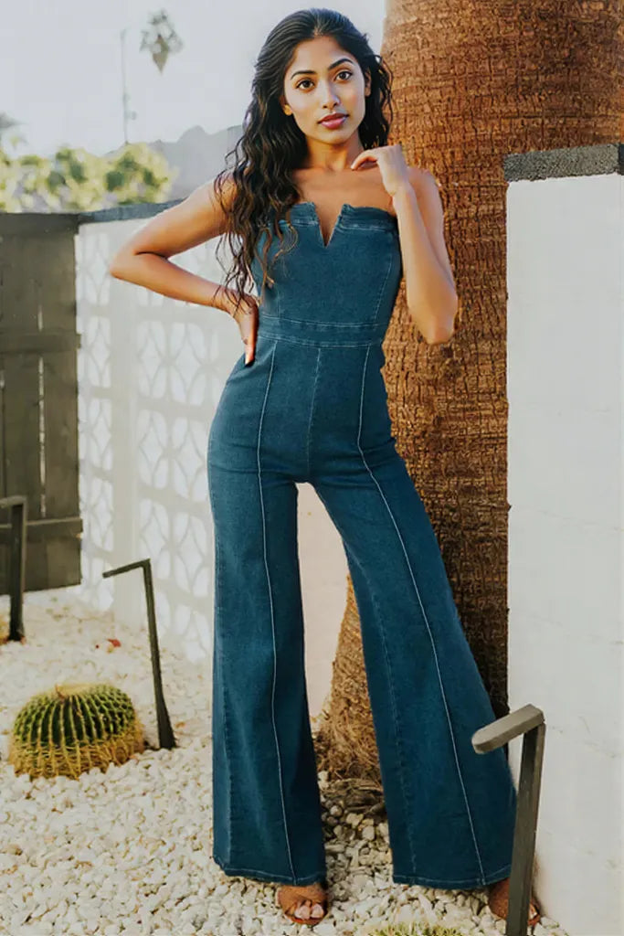 Spaghetti Strap Wide Leg Denim Jumpsuit