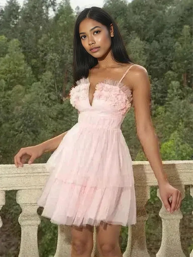Flower Applique Mesh Patchwork Spaghetti Strap Dress