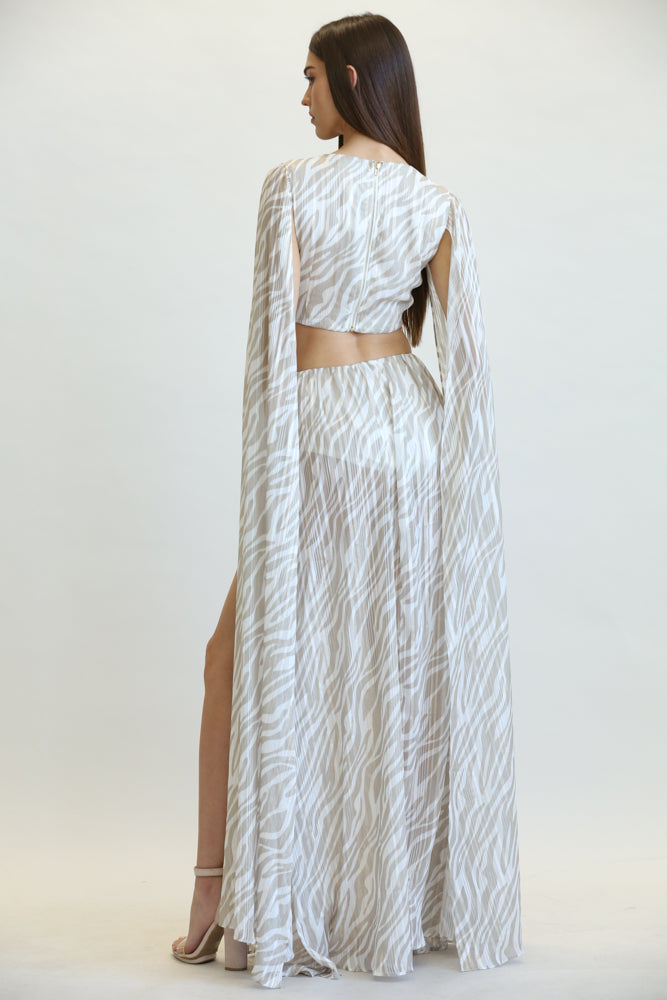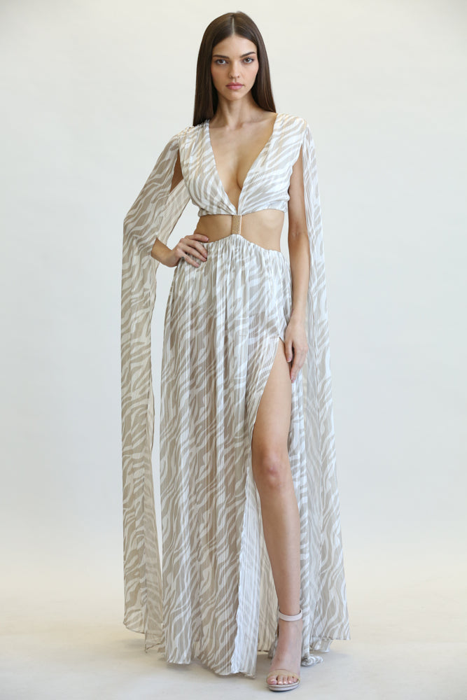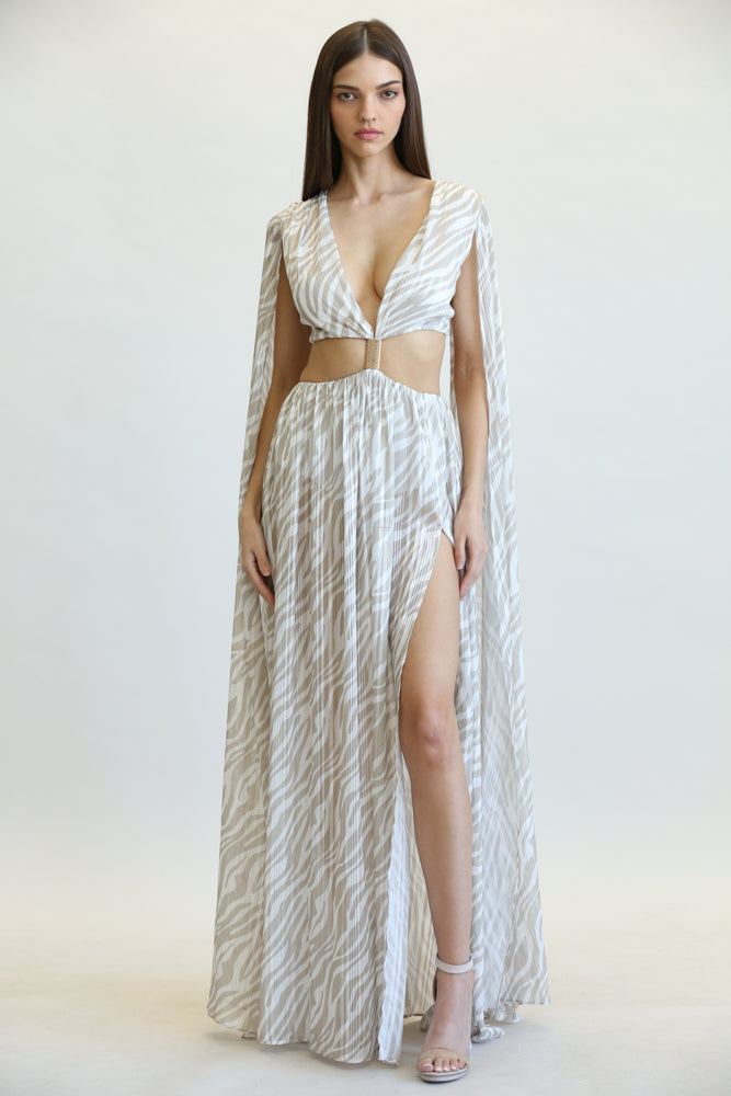 Elevate your wardrobe with the N.O.W. Desire in Timeless Zebra Glamour Dress, where elegance meets allure in a stunning fusion of style. Crafted from sumptuous lurex striped chiffon, this exquisite piece is designed to unleash your inner goddess.