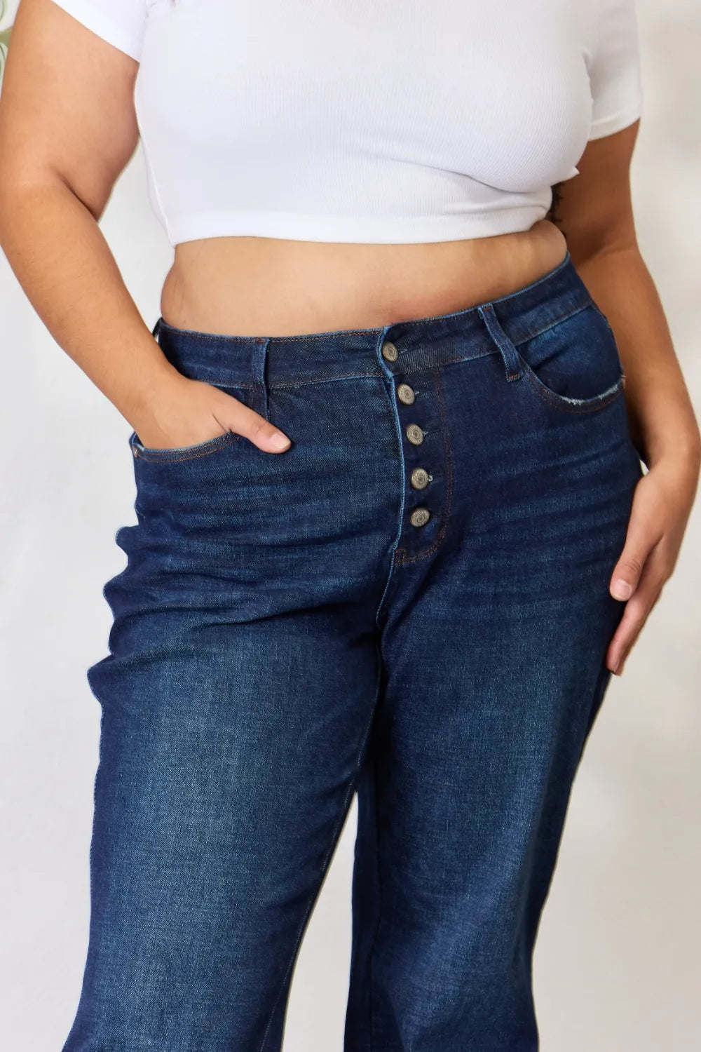 Introducing Judy's Effortless Button-Fly Denim Jeans, the perfect addition to elevate your denim collection. Combining style and comfort, these Vintage Charm Button-Fly Jeans are crafted from premium stretch denim in a versatile medium wash.