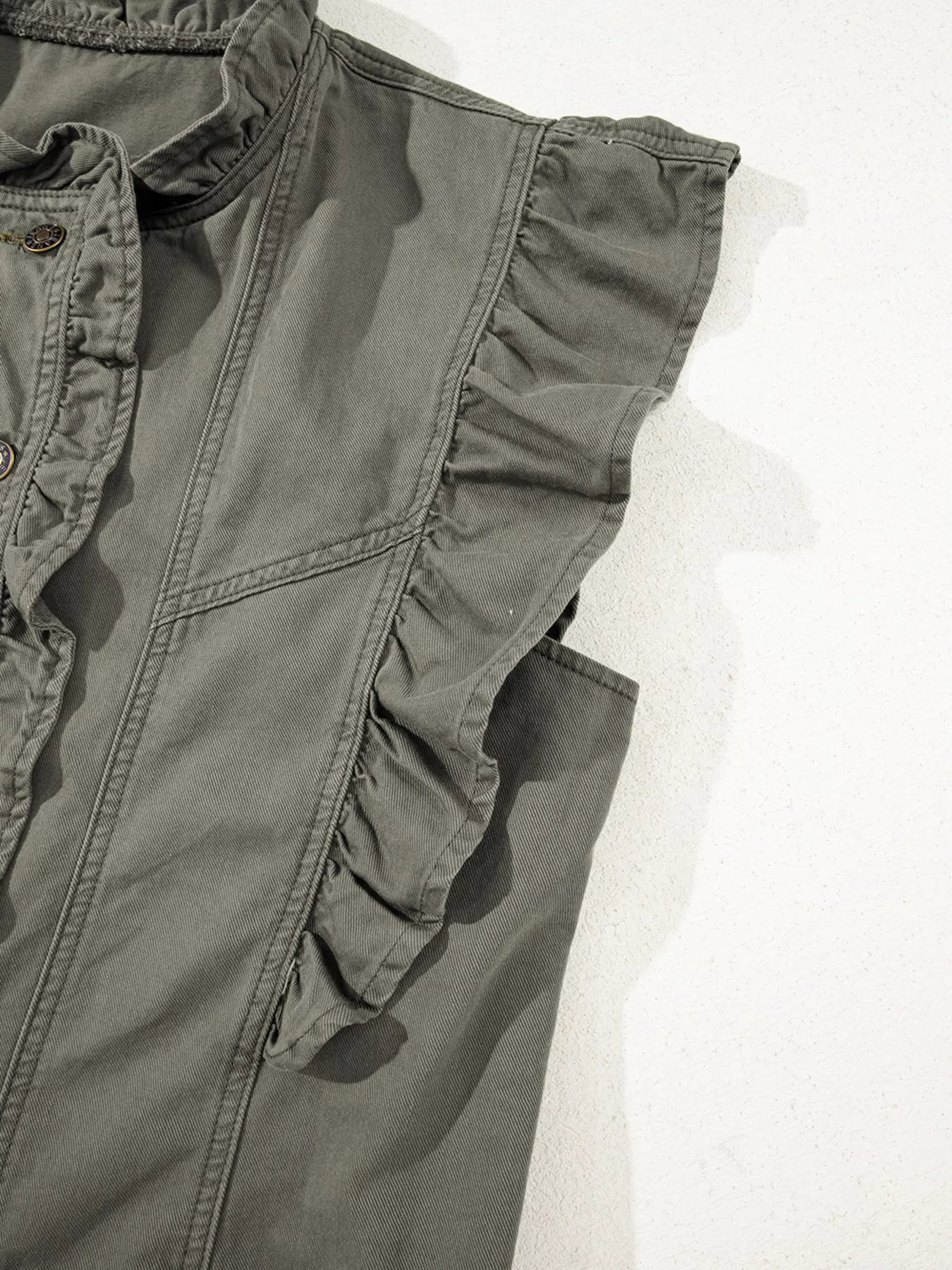 Elevate your style with the Ruffled Patchwork Denim Vest, a versatile piece for all occasions.