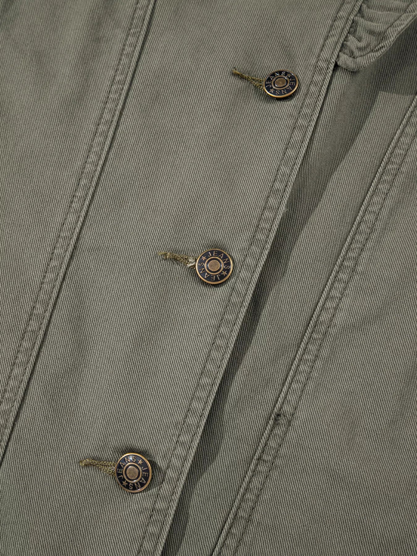 Introducing the Ruffled Patchwork Denim Vest by N.O.W., a striking addition to your wardrobe that combines style and comfort effortlessly. This vest features a buttoned front and delightful ruffled detailing, adding a touch of femininity to your outfit.