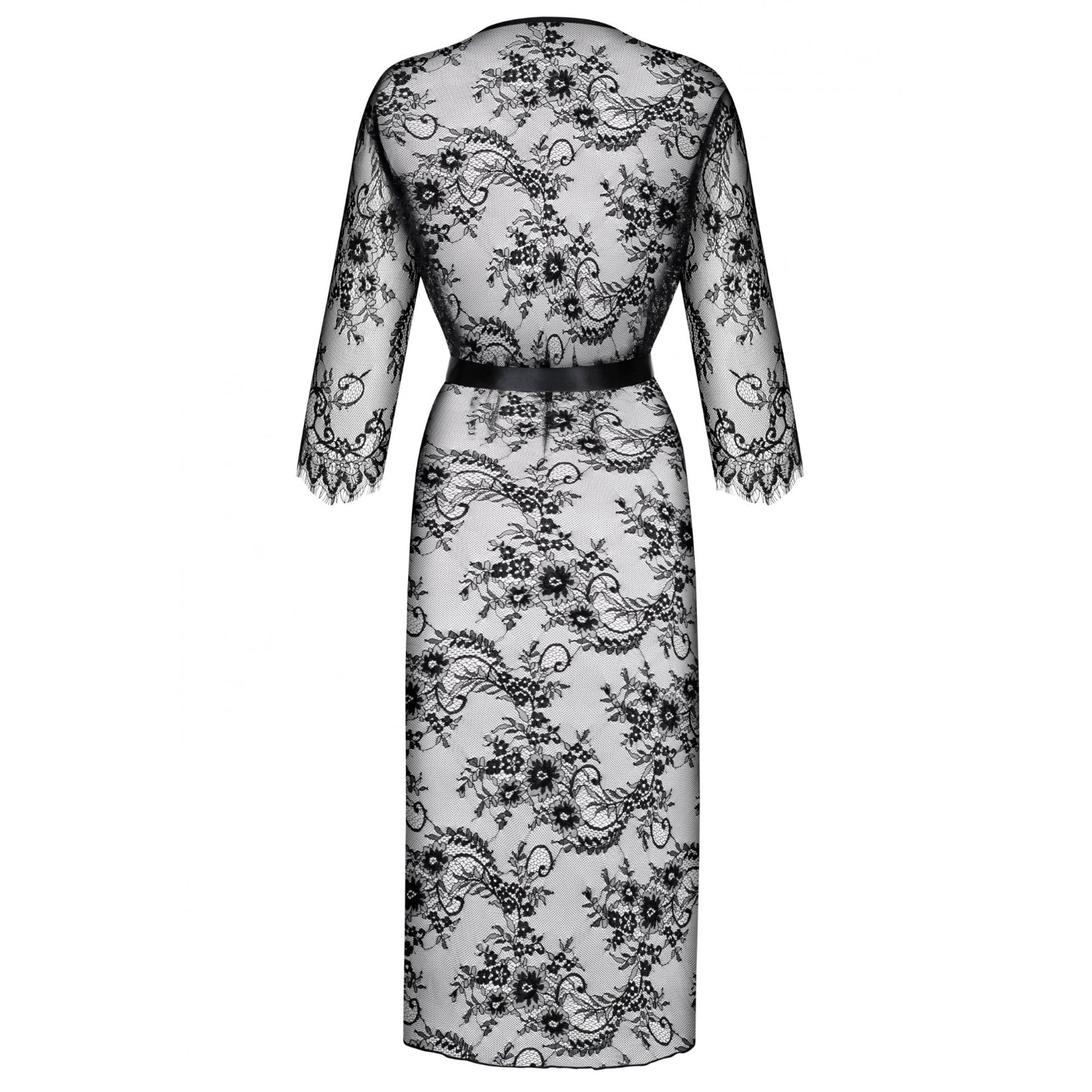 Transform your evenings into a captivating realm of romance with Nina's Midnight Lace Romance Kimono. This exquisite sheer peignoir envelops you in an enchanting embrace, designed to allure and seduce.