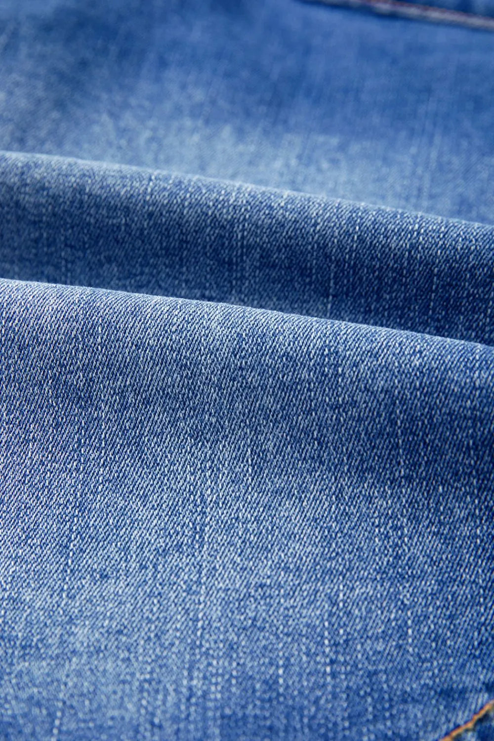 Elevate your fashion game with Kira's Crossed Design Denim Mini Skirt. This chic piece features a distinctive crossed waist design, offering a flattering silhouette crafted from a premium blend of 71% cotton, 27.5% polyester, and 1.5% elastane for ultimate comfort.